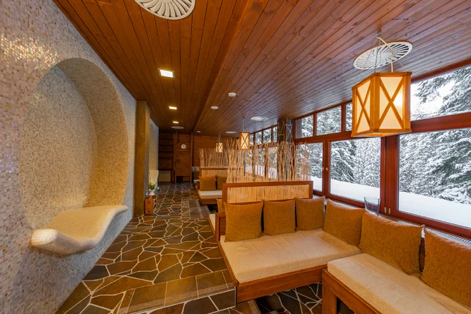 - tepidárium s vyhrievanými lavicami a výhľadom na Vrbické pleso