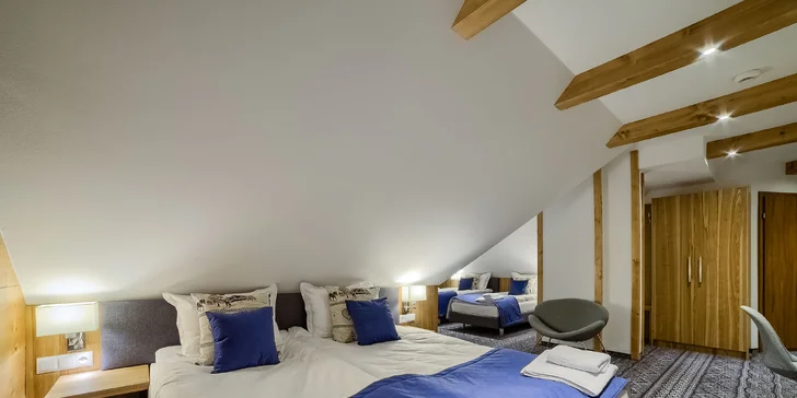 Interiér hotela sa vyznačuje horským štýlom, ktorý je prepojený s prírodnými materiálmi v podobe dreveného nábytku a kovaných dekorácií. Vysoký štandard komfortu ponúkajú dvojlôžkové izby aj s možnosťou prístelky či štvorlôžkové izby s výhľadom na hory. Vybrať si môžete presne podľ svojich potrieb. Všetky sú vybavené manželskou posteľou alebo oddelenými lôžkami, rýchlovarnou kanvicou, písacím stolom, TV a bezplatným pripojením k sieti Wi‑Fi. Dostupnú na zapožičanie sú tiež detská postieľka a vanička. Milým prekvapením je fľaša vína na izbe a v cene máte i bezplatné parkovanie.