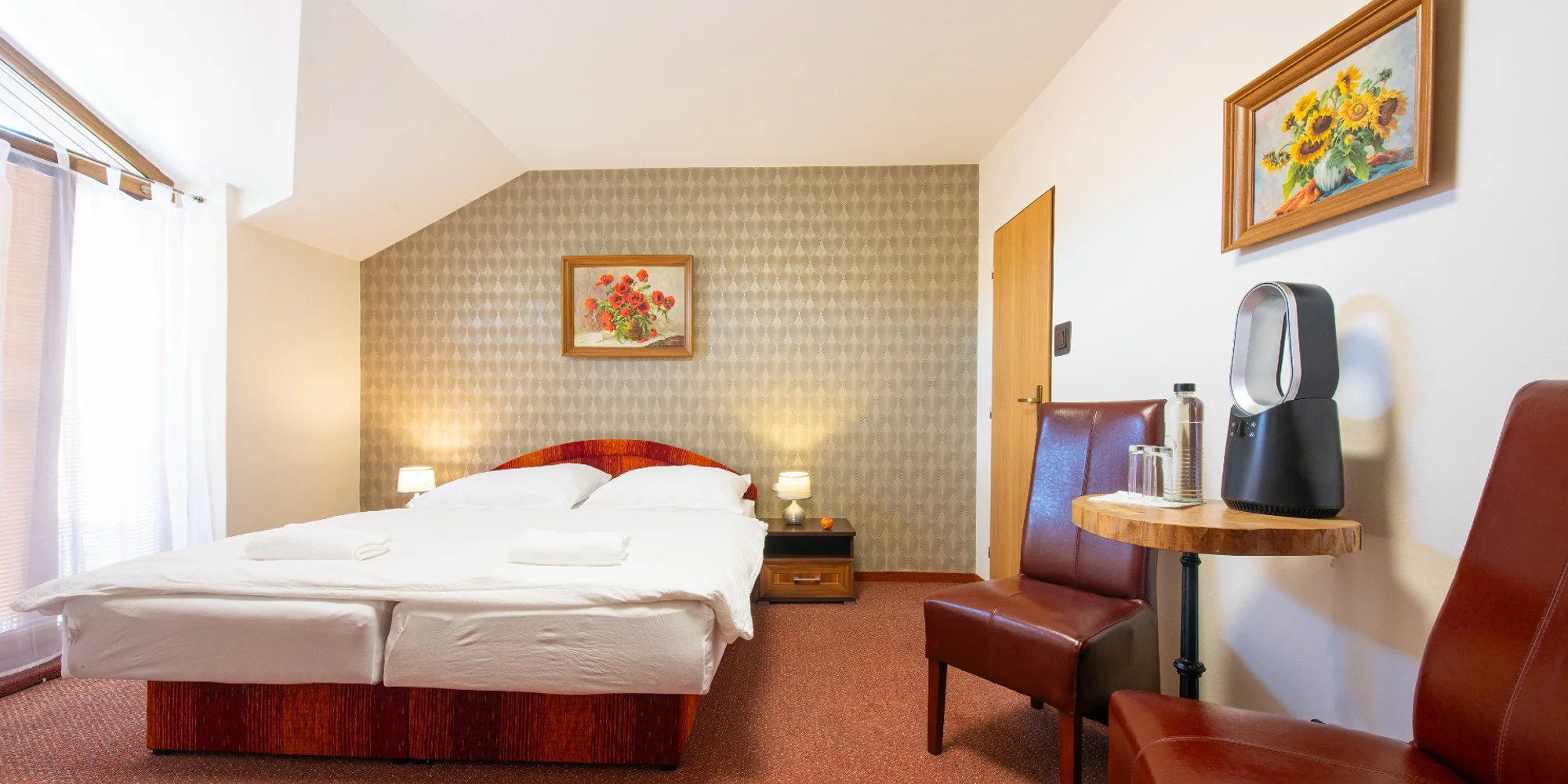 Ubytujete sa v komfortne zariadených klimatizovaných izbách hotelového typu. Podľa svojich potrieb si vyberiete dvojlôžkovú izbu s prístelkou, s balkónom či s oddelenými posteľami, v ponuke sú aj také s výhľadom na nádvorie, alebo trojlôžková či rodinná izba s výhľadom na námestie. Posledná spomínaná – rodinná izba – má pre vás pripravené príjemné prekvapenie. Pribudla v nej sauna, pre milovníkov saunovania ako stvorené.