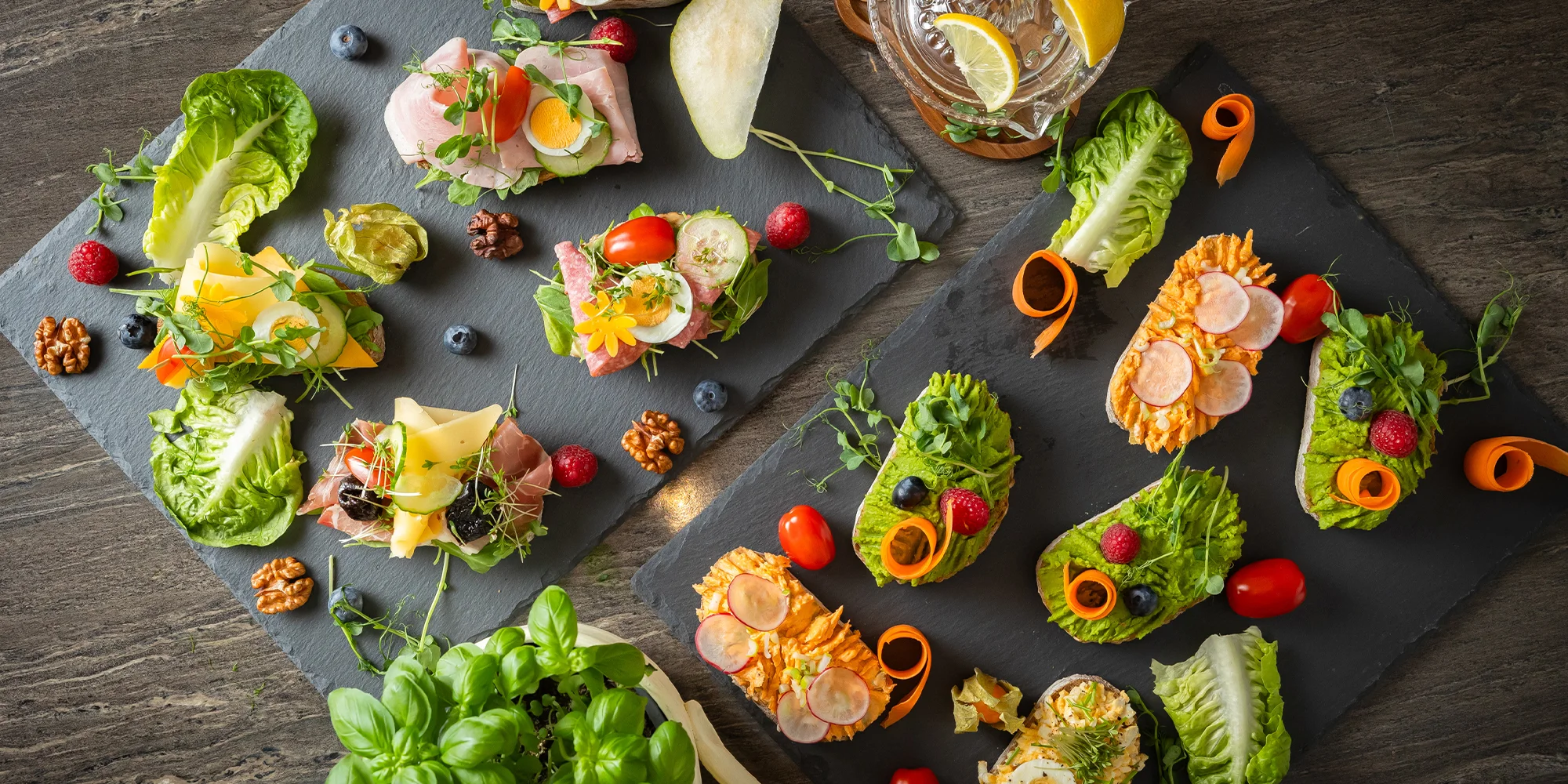 • So schwardwaldskou šunkou a syrom - chlebíček so schwarzwaldskou šunkou, rukolou, majonézou, plátkovým syrom, sušenými slivkami, paradajkou a čerstvou uhorkou, posypaný žeruchou