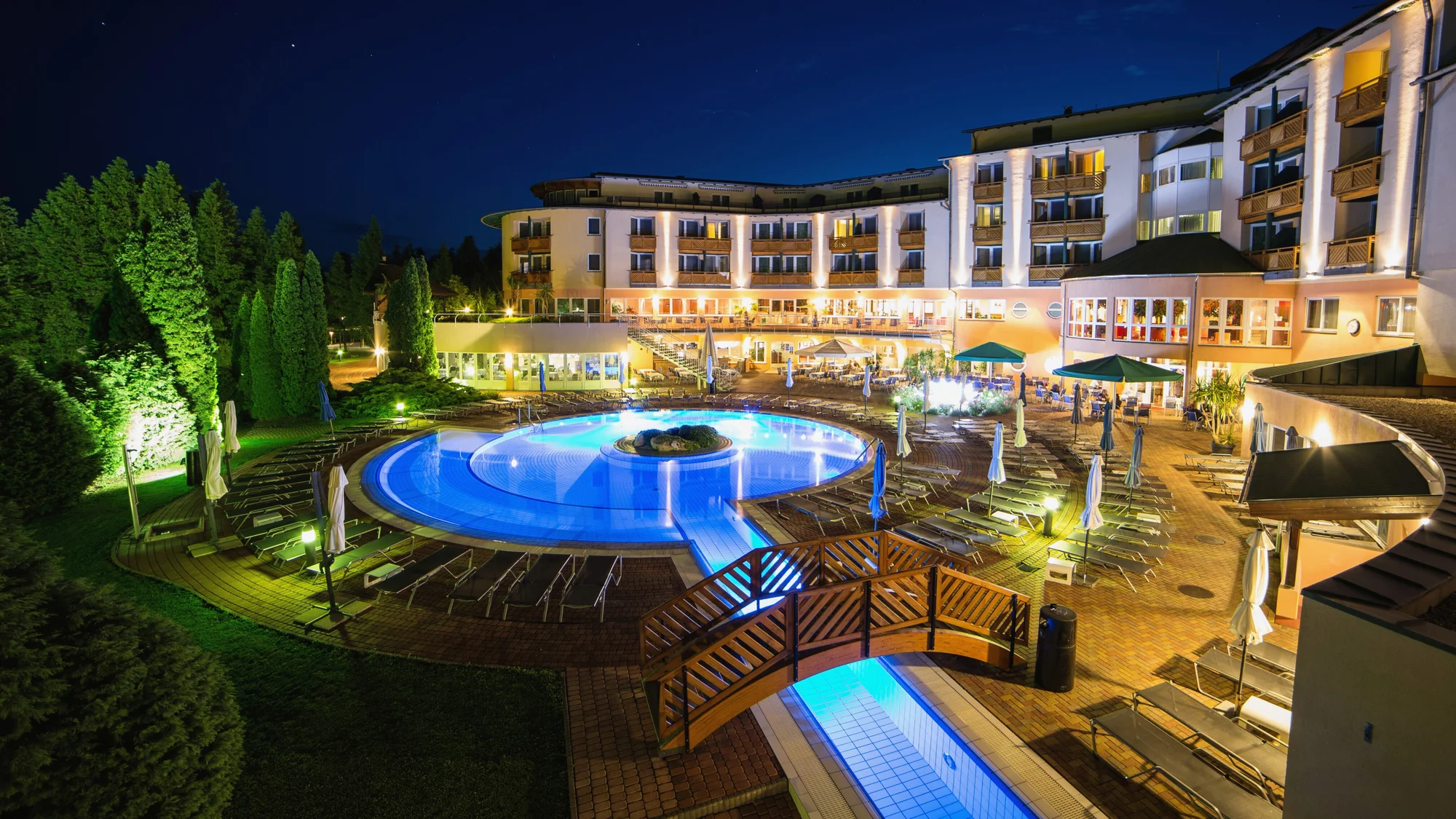 Na rozlohe 3.000 m² nájdete bohatý wellness svet, ktorý vás zahalí do atmosféry pokoja a skutočného relaxu a ktorý si môžete v rámci pobytu užívať neobmedzene. Doprajte svojmu telu liečivé účinky termálnej vody z jazera Hevíz v špeciálnych bazénoch, medzi ktoré patrí vnútorný liečebný bazén, termálny bazén a zážitkové bazény, ako aj vonkajší bazén s osviežujúcou vodou. Nechýba ani vírivka, ktorá je dostupná v exteriéri aj interiéri, a relaxačné sprchy na dokonalé uvoľnenie.