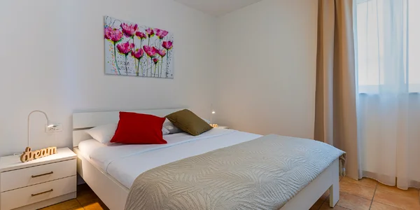 Pripravený pre vás bude priestranný apartmán až pre 4 osoby (43 m²) alebo až pre 6 osôb (45 m²). Menší disponuje samostatnou spálňou s manželskou posteľou, ďalšie dve lôžka sú zaistené v obývacej izbe, kde je aj plne vybavená kuchynka. Samozrejmosťou je sprcha a toaleta. Väčší apartmán má navyše ďalšiu samostatnú spálňu. Oba typy ubytovania vás potešia aj vlastným balkónom s výhľadom na more. Využiť môžete aj vonkajší gril na spoločnej záhrade.