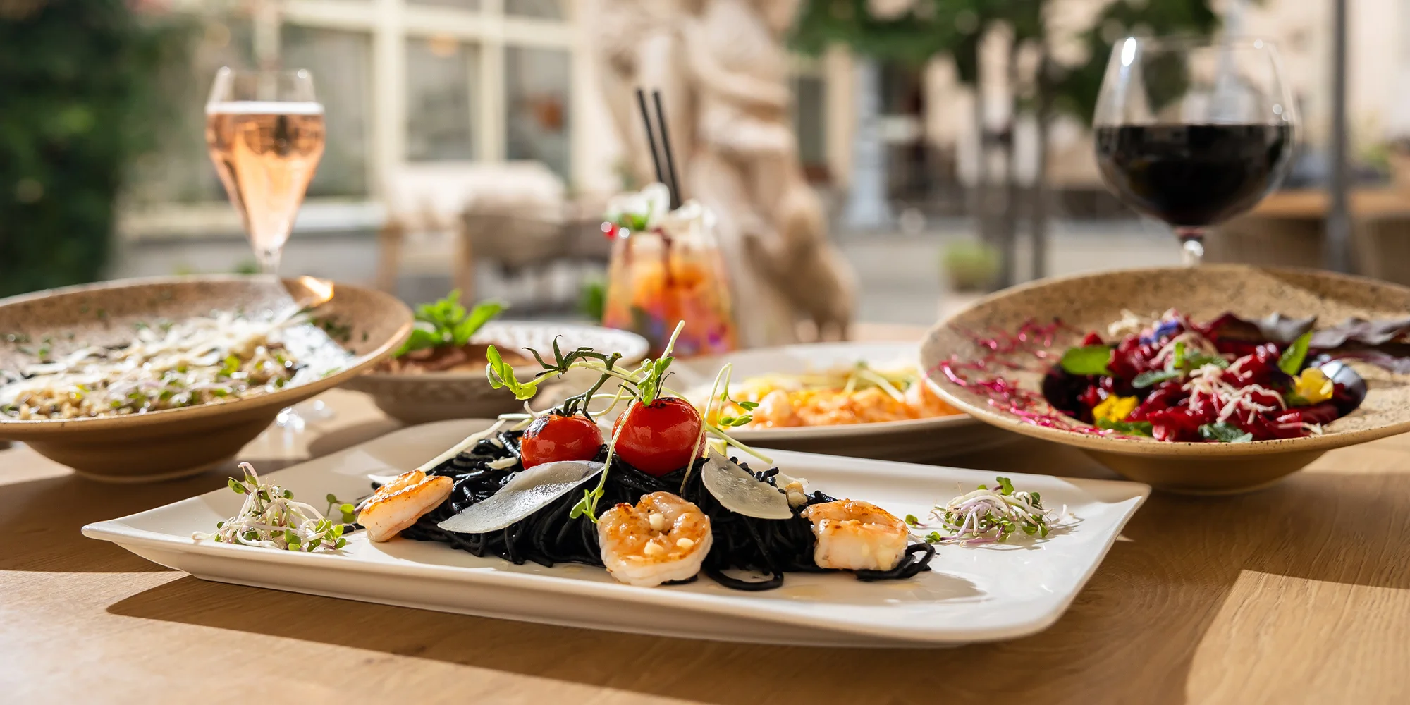 Ako hlavný chod sa môžete rozhodnúť pre autentické tagliatelle carbonara s bohatou, krémovou omáčkou, delikátne špagety Nero di sepia s vôňou mora, krémové hubové rizoto s jemným dotykom čiernej hľuzovky, ktoré uspokojí aj tých najnáročnejších gurmánov alebo špagety Pomodoro e Buffalo mozzarella, v ktorých sa dokonale prelínajú chute paradajok, čerstvých byliniek a mozzarelly z byvolieho mlieka.