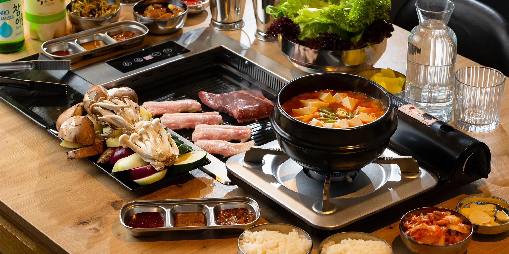 Príjemné chvíle v príjemnej spoločnosti, lahodné jedlo a podmanivá atmosféra. Sadnete si spolu za originálny kórejský stôl dovezený priamo z Ázie a necháte pred sebou pomaličky bublať aromatickú polievku. Kým sa budete strácať vo vôni polievky, na grile si medzitým môžete opekať šťavnaté kúsky mäsa (alebo vegánske klobásky). Všetko za sprievodu chutí, ktoré priviezol majiteľ z vlastnej cesty po Kórei. Kombinácia vôní, horúcich tanierov a drobných príloh robí z tejto večere niečo, čo sa neje, ale zažíva.