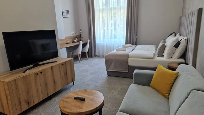 Ubytujete sa v izbách typu Deluxe a Standard. Izby Deluxe majú vysoké stropy a vďaka veľkým oknám sú svetlé a vzdušné. Na mieru vyrobený nábytok a starostlivo vyberané doplnky umocňujú pocit pohodlia. Izby Standard sú podkrovné a môžete sa v nich pokochať pôvodnými drevenými trámami, ktoré sa podarilo zachovať.