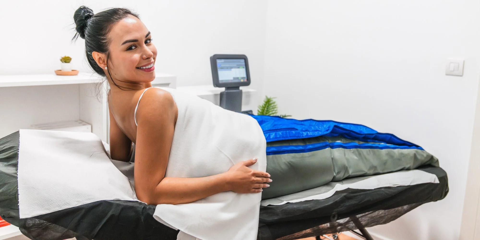 Vykonáva sa pomocou moderného medicínsko-kozmetického prístroja s 24-komorovými kompresnými návlekmi na končatiny. Zariadenie umožňuje nastavenie vhodného programu (je ich až 100!), na základe diagnózy či požadovaných účinkov – zobrazíte ich kliknutím SEM. Jednotlivé programy sú vhodné pre ženy aj mužov bez vekového obmedzenia.