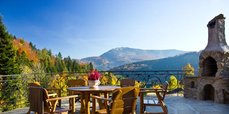 - Priestranná stena a súkromná terasa s panoramatickým výhľadom, s grilom a záhradným nábytkom