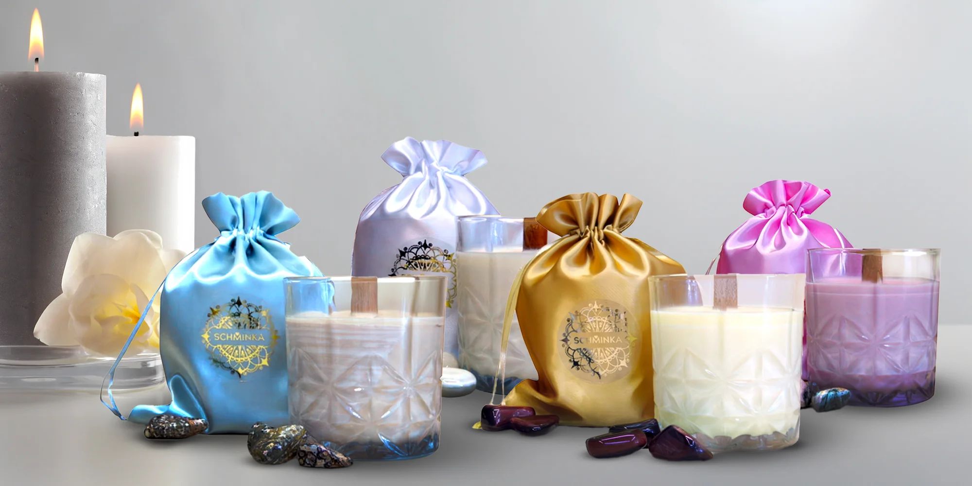 Sójový vosk oproti parafínu vydrží horieť podstatne dlhšie, a to až 40 hodín. Po zapálení dreveného knôtu, ktorý praská rovnako ako krb, vás obklopí vôňa santalového dreva, pačuli, neroli, ruží i jazmínu. A aké kamienky objavíte po dohorení sviečky? Biely achát, leopardí jaspis, tigrie oko či rodonit. Budú sa krásne vynímať na poličke, zlepšia vám náladu alebo doplnia vzácnu zbierku.