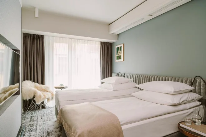 V moderne zariadenom hoteli na vás čakajú jednolôžkové alebo dvojlôžkové izby vybavené všetkým, čo potrebujete na pohodlnú mestskú dovolenku. Nájdete v nich komfortnú posteľ, kúpeľňu so sprchovacím kútom a toaletou, televíziu, Wi‑Fi pripojenie, v izbách tiež klimatizáciu a podlahové kúrenie.