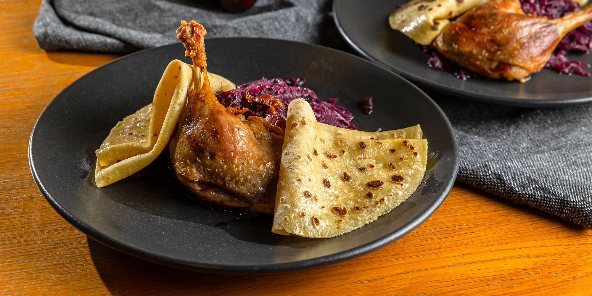 Vo variante pre 2 osoby na vás čakajú dve porcie šťavnatého kačacieho stehna (cca 500g mäsa) spolu so štyrmi kusmi mastených lokší a neodmysliteľnou červenou kapustou. Ak sa rozhodnete stráviť spoločné chvíle vo štvorici, poteší vás variant pre 4 osoby, ktorý zahŕňa 4 porcie kačacích stehien (cca 1000 gramov) a 8 lokší doplnených o červenú kapustu. Dokopy to bude slušná nádielka dobrého jedla, takže nezabudnite prísť poriadne hladní.