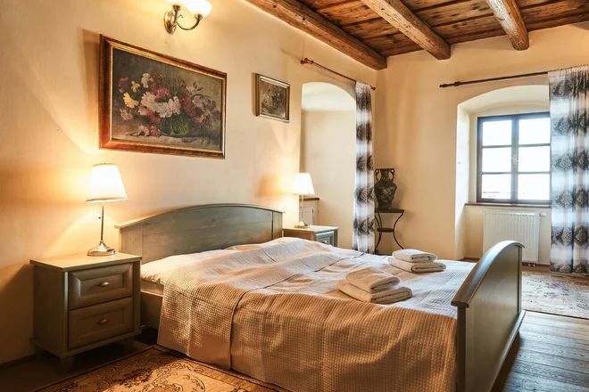 Ubytovaní budete v komfortnej dvojlôžkovej izbe s TV, písacím stolom a samostatnou kúpeľňou, v ktorej sa nachádza sprchový kút a toaleta. Za príplatok sa môžete ubytovať aj v priestrannejších, štýlovo zariadených suitách a apartmánoch, v ktorých budete mať navyše k dispozícii aj rozložiteľný gauč. Všetky typy ubytovacích jednotiek disponujú drevenými podlahami a zdobenými drevenými trámami. Z penziónu sa vám naskytne jeden z najkrajších výhľadov na mesto. Ničím nerušený oddych si do sýtosti užijete v krásne udržiavanej záhrade s terasou. V altánkoch s grilom si zase ugrilujete šťavnaté mäso či zeleninu a zložitejšie jedlá pripravíte v spoločnej kuchyni.