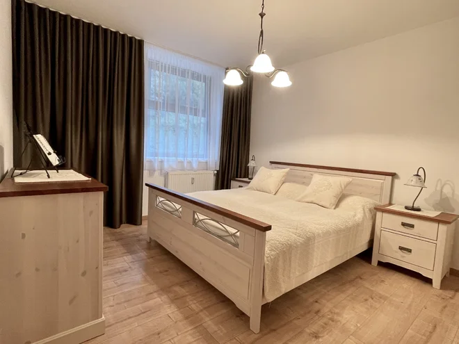 Apartmán č. 1 (pre 6 osôb): 2 x izba s manželskou posteľou a jednolôžkom, obývacia časť s LED TV, bezplatné Wi‑Fi pripojenie, minibar, šatníková skriňa, kúpeľňa so sociálnym zariadením Apartmán č. 2 (pre 5 osôb): spálňa s manželskou posteľou a jednolôžkom, izba s tromi lôžkami, LED TV, bezplatné Wi‑Fi pripojenie, minibar, šatník, kúpeľňa so sociálnym zariadením Apartmán č. 3 (trojlôžkový apartmán s možnosťou prístelky): 3 x spálňa (manželská posteľ s jednolôžkom), obývačka s LED TV, rozkladacím gaučom (vhodný ako prístelka) a balkónom, minibar, bezplatné Wi‑Fi pripojenie, šatníková skriňa |