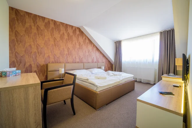 V ponuke sú dva typy komfortného ubytovania: apartmán a dvojlôžková izba. V apartmáne (cca 30 m²) nájdete manželskú posteľ, rozkladací gauč pre dve prístelky, stôl, minibar, klimatizáciu, trezor, TV a vlastnú kúpeľňu so sprchovým kútom a županmi. V dvojlôžkovej izbe (cca 20 m²) je manželská posteľ a možnosť prístelky, stôl, minibar, TV, klimatizácia a trezor, kúpeľňa so sprchou a županmi. Všetky izby sú navrhnuté tak, aby vám poskytli komfort a útulné zázemie po dni plnom zážitkov. Bezplatné Wi‑Fi a parkovanie zadarmo sú samozrejmosťou.