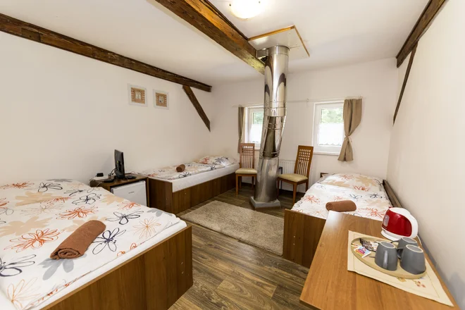 Pripravená pre vás bude izba, v ktorej nájdete všetko potrebné. K vybaveniu patrí televízor, chladnička, rýchlovarná kanvica a nechýba ani vlastná kúpeľňa. Samozrejmosťou je aj Wi‑Fi pripojenie zadarmo, vďaka ktorému môžete hneď zdieľať všetky krásne zážitky so svojimi blízkymi.