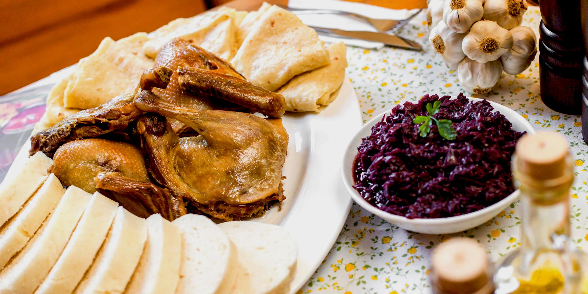 Vychutnajte si s partiou v príjemnej atmosfére celú, pomaly pečenú kačicu so zemiakovými lokšami alebo domácou parenou knedľou a karamelizovanou červenou kapustou!