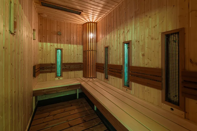 • Bazén s masážnymi tryskami (10 m) – teplota vody 29– 30 °C, vírivka pre 6 osôb – teplota vody 35– 36 °C, sauny (fínska, parná, infra), oddychová zóna.