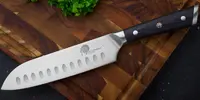 Nôž šéfkuchára Santoku má všestranné využitie a poradí si s mäsom aj zeleninou. Jeho rovné ostrie a tupý chrbát umožnia bezpečné krájanie či drvenie. Jeho parťáka s vrúbkovaným ostrím využijete pri krájaní chleba a ďalšieho pečiva, ktoré je na povrchu tvrdé a vo vnútri mäkké. Pomôže vám ale aj so spracovaním melónu alebo ananásu.