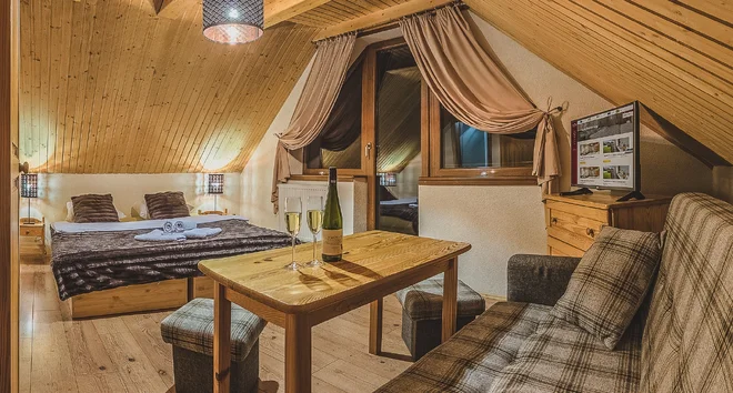 Malebné izby vás zaujmú už na prvý pohľad. Potešia najmä dreveným interiérom, ktorý pripomína ubytovanie v rodinnej chate a komfortným zariadením. Cítiť z nich príjemnú atmosféru a pokoj. Sú orientované buď na východ – vtedy sa vám naskytne výhľad na masív Západných a Nízkych Tatier alebo na západ. V tomto prípade vás očarí výhľad na les, záhradu a masív Chočských vrchov.