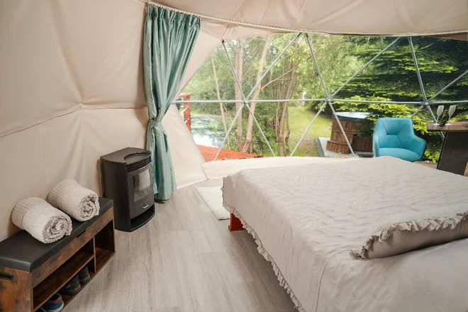 Geokupola ukrytá medzi stromami je miesto, kde sa zastaví čas, kde vás ráno zobudí spev vtákov a prvé slnečné lúče vás cez veľké panoramatické okná zahrejú priamo v posteli. Výhľady na hlboké lesy vás spoja s prírodou, bez toho aby ste sa museli vzdať pohodlia a romantiky.