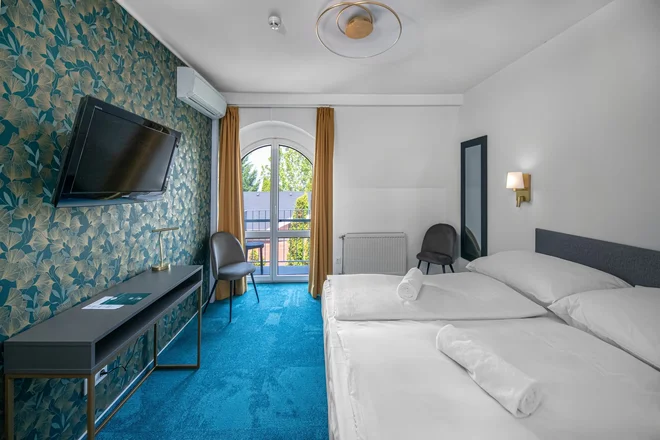 Ubytovanie je ako stvorené pre páry, ktoré si chcú užiť pokoj, pohodlie a výhľad na vodu. V ponuke je elegantná dvojlôžková izba Classic, ktorej hlavnou výhodou je moderné vybavenie a čistý štýl. Nájdete tu manželskú posteľ s rozmerom 160×200 cm, vlastnú kúpeľňu so sprchovacím kútom a fénom, ale aj TV, chladničku a klimatizáciu, čo sa pri letných horúčavách pri Balatone skutočne hodí. Izba je ideálna pre dvoch, ktorí sa chcú vyspať doružova a cez deň oddychovať na pláži alebo v záhrade pod stromami.