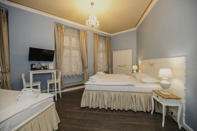 Celkovo je v trojposchodovom dome 13 vkusne zariadených izieb s vlastnou kúpeľňou a Wi‑Fi pripojením. Pre vás bude pripravená izba Superior (16 m²) alebo Executive (20 m²) s jednou spálňou s manželskou posteľou a kúpeľňou so sprchovacím kútom. Pripravené tu budete mať všetko potrebné – posteľnú bielizeň, uteráky, fén aj sprchový gél. Pustiť si môžete televíziu a cennosti schovať do trezoru.Dobré vedieť: Vzhľadom na historický charakter budovy sa tu nenachádza výťah.