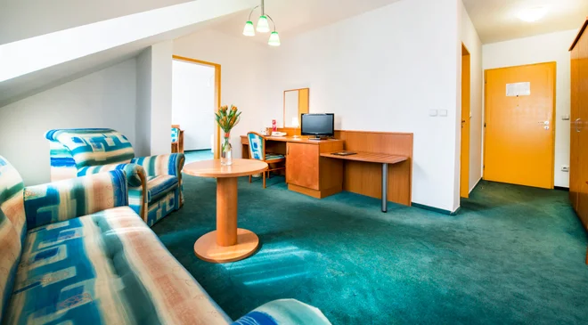 Odpočiniete si v komfortnej izbe alebo apartmáne so satelitnou televíziou, minibarom a vlastnou kúpeľňou s fénom na vlasy. Samozrejmosťou je Wi‑Fi pripojenie a na recepcii nájdete internetový kútik.