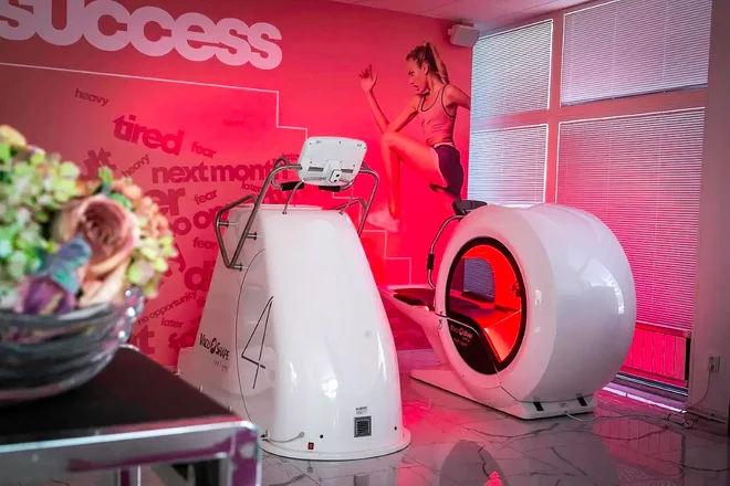 - Vacushape je prístroj so zabudovaným bežeckým pásom a podtlakovou komorou