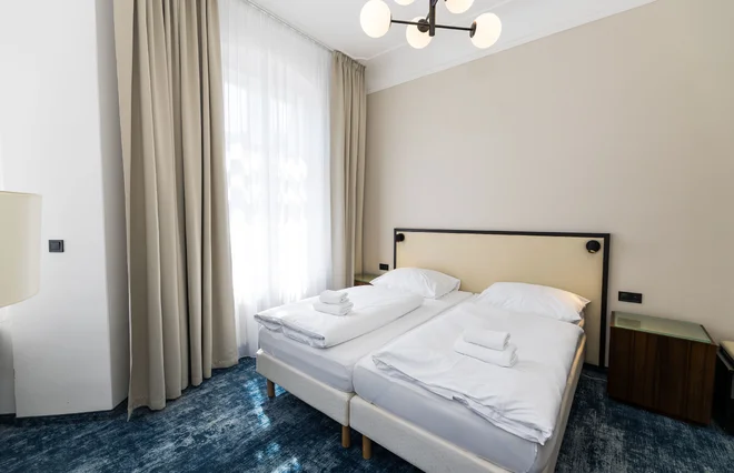 Po príchode sa ubytujete v dvoj- až štvorlôžkových izbách Deluxe, Standard či Superior. Všetky sú vybavené moderným nábytkom a pohodlnými posteľami, kde načerpáte energiu na všetky vaše prechádzky. Samozrejmosťou je vlastná kúpeľňa so sprchovacím kútom, WC a fénom, televízia, trezor a Wi‑Fi pripojenie. A ak ráno neotvoríte oči bez šálky kávy, určite vás poteší, že na izbe nájdete aj kávovar. Z niektorých izieb sa vám navyše naskytne aj krásny výhľad na mesto a rieku.