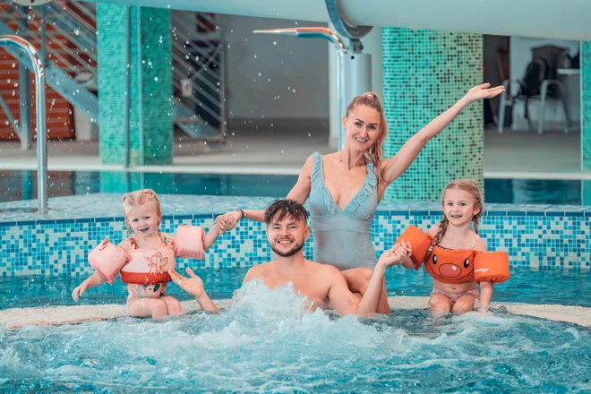 Tešte sa na plavecký bazén s perličkovými lôžkami aj detský bazén, divokú rieku, vodné chrliče, vírivku a 50 metrov dlhý tobogan. To bude jazda! Saunový svet má vnútornú aj vonkajšiu časť, prehrejete sa vo fínskej saune, zúčastniť sa môžete saunových ceremoniálov, ďalej sú tu sauny s vôňou medu, orientu aj drevín, nechýba Kneippova terapia, ktorá vás pekne rozprúdi, a oddychová miestnosť s vyhrievanými ležadlami. A čo je super? Ochladíte sa nielen pod sprchami a vedrami, ale aj v prírodnom jazierku.