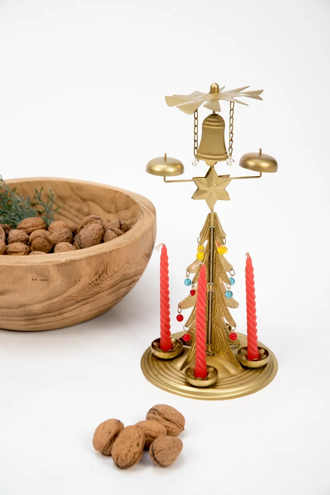 Anjelské zvonenie je malá česká firma, ktorá sa špecializuje na výrobu rovnomenných dekorácií v pôvodnej kvalite. Vyberiete si z niekoľkých farieb a to zo zlatej, striebornej, čiernej aj bielej. Každý kus je vyrábaný ručne z hliníkového valcového plechu, ktorý je dekorovaný zlatou úpravou. Farebná skladba korálikov sa navyše nikdy neopakuje. Na stojany rovno do košíka prihoďte aj sviečky v retro obale.