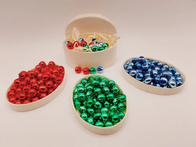 Okrem tejto uchu lahodiacej dekorácie sú k dispozícii aj ručne maľované sklenené banky z českého skla, ktoré zavesíte na stromček alebo kamkoľvek inam budete chcieť. Tie vám dorazia taktiež v drevenej krabičke.