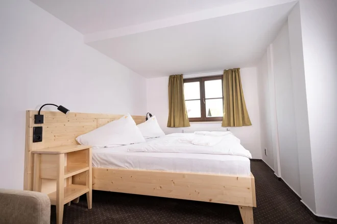 Ponúkajú tu ubytovanie v útulných izbách, ktoré sú zariadené v modernom štýle, ktorý však nezabúda na typickú šumavskú atmosféru. V každej izbe je nábytok z masívneho dreva, zelené doplnky alebo napríklad obrazy z tunajšieho kraja. Nechýba kúpeľňa so sprchou a toaletou, televízia, Wi‑Fi pripojenie ani chladnička. V ponuke sú menšie izby pre páry, stredné s možnosťou jednej prístelky alebo veľká izba s obývacím kútom a možnosťou ďalších dvoch prísteliek.