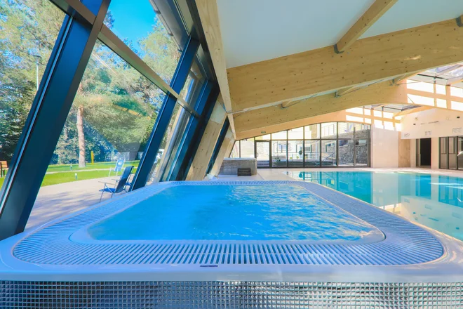 - bazén 10×7 m, vírivka, suchá sauna a parná sauna