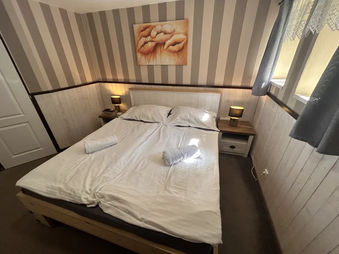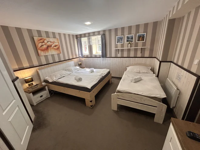 Bývať budete v komfortnej izbe, ktorá vám poskytne všetko pre pohodlný oddych. Vyspíte sa na pohodlných posteliach (v niektorých izbách slúži ako prístelka gauč), nechýba kúpeľňa so sprchou a toaletou, o večernú pohodu a zábavu sa postará televízia a Wi‑Fi. A čo s autom? Bez problémov ho zaparkujete priamo pri penzióne.