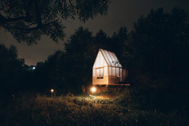 Projekt je dielom experimentálneho architektonického PrimitiveStudia a zúčastnil sa aj prestížnej súťaže Česká cena za architektúru. Jeho minimalistický dizajn z dreva a mliečnych polykarbonátových stien vás zaujme na prvý pohľad a zároveň krásne splýva s okolím prírody. Jednoduchý interiér ponúka dve dlhé lavice, na ktorých sa pohodlne vyspíte. Stačí si priniesť nafukovací matrac či karimatku a spací vak.