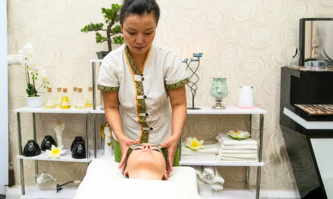 Začína sa jemným peelingom (10 min), ktorý zbaví pokožku nečistôt a pripraví ju na príval výživy. Nasleduje relaxačná masáž tváre, krku a dekoltu s teplými bylinnými guľami (40 min), ktoré sa zohriate prikladajú priamo na pokožku, a tak stimulujú akupresúrne body, uvoľňujú napätie a zanechávajú pokožku hodvábne jemnú. Na záver sa aplikuje hydratačná maska (10 min), ktorá uzamkne všetky účinné látky a dodá pleti žiarivosť.