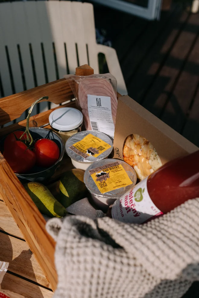 - Raňajky vo forme debničky plnej farmárskych regionálnych potravín