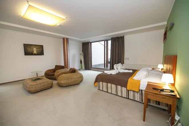 Oddýchnete si v komfortnej dvojlôžkovej izbe (manželská posteľ alebo dve samostatné lôžka), kde nechýba kúpeľňa s priestrannou vaňou a toaletou, minibar, televízia a Wi‑Fi. Väčšina izieb disponuje terasou. Určite vás tiež poteší, že na vás bude na izbe čakať fľaša prosecca.