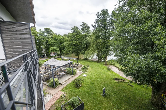Bývať budete v dvojlôžkovej hotelovej izbe, ktorú je možné rozšíriť o jednu až dve prístelky. K dispozícii budete mať kúpeľňu so sprchou a fénom, satelitnú TV, Wi‑Fi pripojenie, trezor a minibar. Izba ponúka výhľad do ulice na záhradky a nemá balkón, za príplatok vám však radi pripravia izbu s balkónom a výhľadom na jazero. Auto zdarma zaparkujete priamo v areáli.