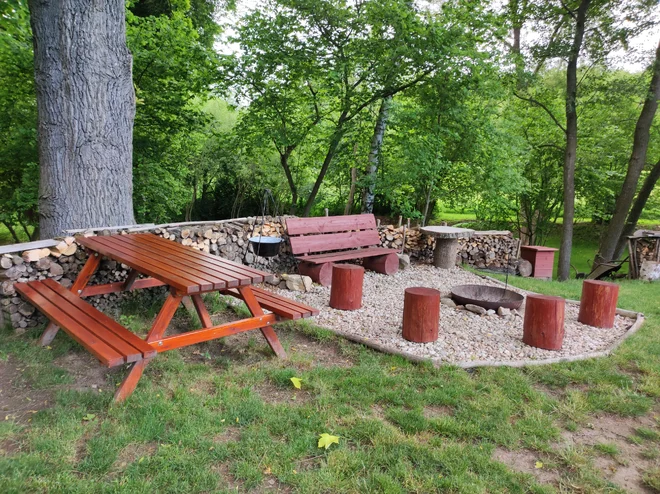 Vonku nájdete tiež štýlové zázemie na oddych, kde budete mať pripravené ohnisko s posedením pod stáročným dubom, gril, kotlík a samozrejme aj drevo. Relaxovať môžete aj na malom móle alebo v hojdacej sieti medzi stromami.