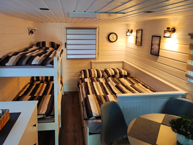 V hausbóte vám nebude chýbať nič dôležité. Vyspíte sa na pohodlnej manželskej posteli a poschodovej posteli, samozrejmosťou je aj kuchynka so sporákom a chladničkou. Hygienu zabezpečuje vonkajšia sprcha so zásobníkom na 50 litrov vody a suché WC.