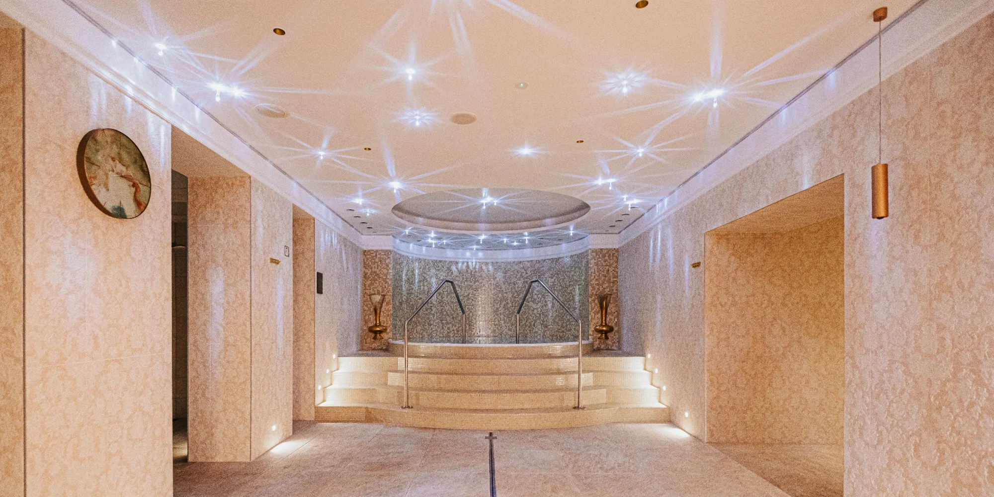 - 2 vírivky, saunový svet (bio, parná, soľná a infrasauna), ľadopád, ochladzovací bazén, zážitkové sprchy a oddychová miestnosť