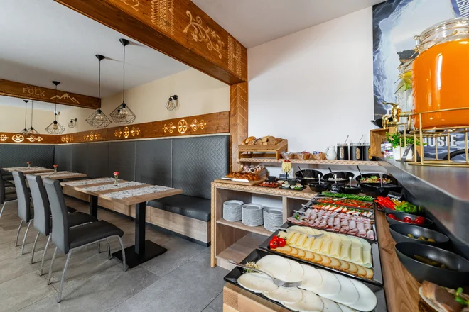 - Raňajky formou bufetových stolov alebo výberom z raňajkového menu podľa obsadenosti hotela pre zvolený počet osôb