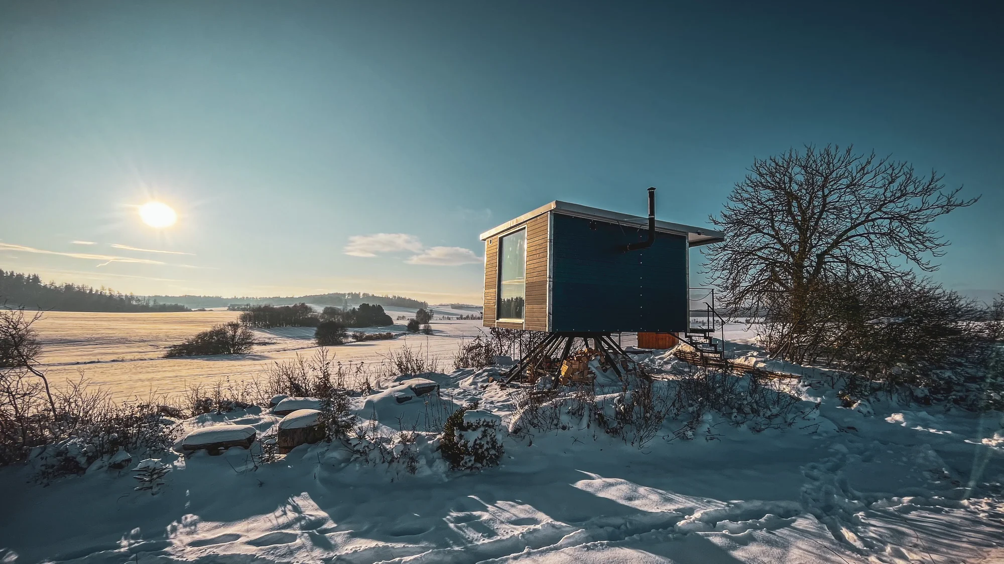 Pulpit stojí na pokojnom mieste pri rybníku, obklopuje ho les a ponúka sa odtiaľto výhľad na okolitú kopcovitú krajinu. Zážitok môžete ešte umocniť relaxáciou v hot tube (za príplatok). Ponorte sa spolu do horúcej vody a sledujte západ slnka alebo hviezdnu oblohu. K tomu si nalejte pohár vína a nebude vám chýbať vôbec nič…