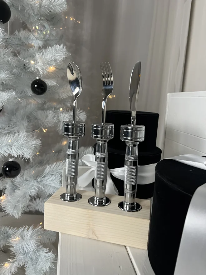 Je to originálny fitness príbor, nielen pre fitness nadšencov, ktorý nesmie chýbať pri žiadnom stole pravého športovca. Človek naozaj posilňuje aj pri jedle. Zaručujeme bolenie rúk do 10 minút pri obede či večeri.