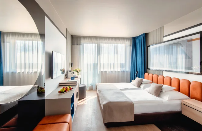Bývať budete v dvojlôžkovej izbe (20 m²) vo východnom alebo západnom krídle hotela, pričom tie v západnom krídle majú navyše balkón. Všetky izby sú klimatizované a vybavené kúpeľňou. V ponuke je pobyt pre 2 dospelé osoby, pri kúpe voucheru sa dá zvoliť aj pobyt s jedným dieťaťom do 11,9 rokov.