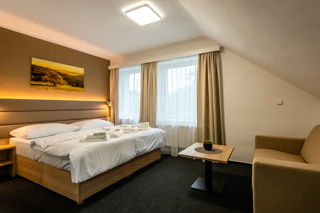 Nachystanú budete mať komfortnú izbu spĺňajúcu všetky požiadavky moderného ubytovania. Vyspíte sa na pohodlnej posteli (k dispozícii sú aj izby s možnosťou prístelky), o hygienu sa postará priestranná kúpeľňa so sprchou a toaletou a príjemnú teplotu zaistí klimatizácia. Pre hostí je k dispozícii aj klubová miestnosť, deti zase budú nadšené z herného kútika. Na uloženie bicyklov, lyží alebo kočíkov môžete využiť miestnosť na prízemí penziónu.