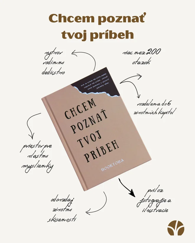 Stačí zaobstarať knihu „Chcem poznať tvoj príbeh“, ktorej stránky ešte len čakajú na vyplnenie. Samotná kniha pisateľa navedie, nad čím sa zamyslieť, prostredníctvom viac ako 200 premyslených otázok z obdobia rôznych životných etáp od detstva, dospievania, cez pracovný život až po múdry vek. Kniha je ideálnym darčekom ako vyplnená, tak prázdna. Záleží len na vás, komu a aký príbeh chcete odovzdať.