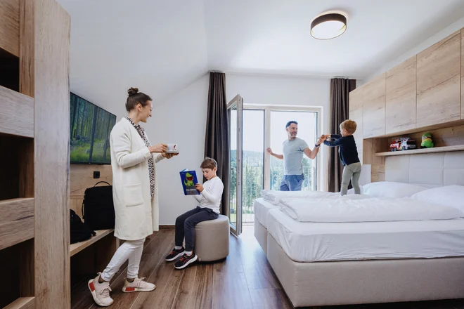 Ako doma sa budete cítiť v komfortne zariadených izbách, ktoré sú vhodné pre pár aj celú rodinu. Na výber totiž máte izbu s manželskou posteľou a prípadnou poschodovou posteľou. Samozrejmosťou je televízia, bezplatné Wi‑Fi pripojenie a vlastná kúpeľňa so sprchovacím kútom. Z balkóna budete obdivovať panoramatické výhľady na okolité horizonty, ktoré vám dodajú pocit pokoja a pohody.