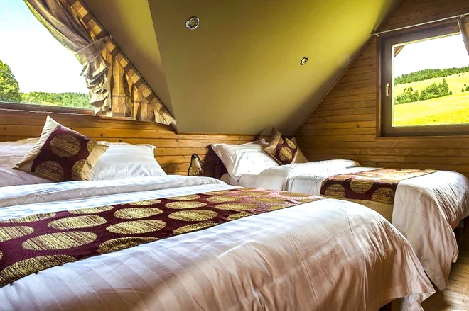 Pobyt je bez stravy, takže pripraviť si môžete niečo chutné pod zub. Ak sa vám nebude chcieť variť, tak si pokojne priplaťte za raňajky alebo polpenziu. Jedlo si objednáte v rezorte len 150 metrov od chatiek. V chladnejšom počasí sa zohrejete pri krbe, zahráte si spoločenské hry alebo sa pokocháte výhľadom na lúky a žblnkotajúci potok.